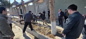 Суратгузориш аз ҷараёни корҳои ободонӣ, кабудизоркунӣ ва ниҳолшинонӣ дар суди шаҳри Конибодом ба муносибати ҷашни 35 солагии Истиқлоли давалатии Ҷумҳурии Тоҷикистон